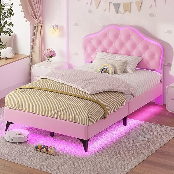 ADORNEVE Twin Size Upholstered LED Bed Frame