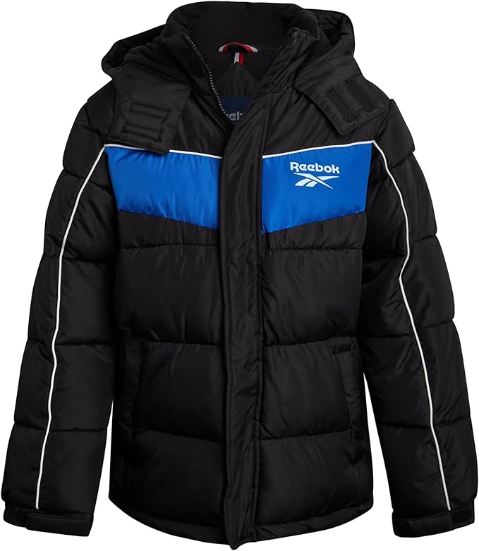 • Reebok boys’ puffer jacket delivers lightweight warmth, sporty style, and comfort for chilly outdoor days.
